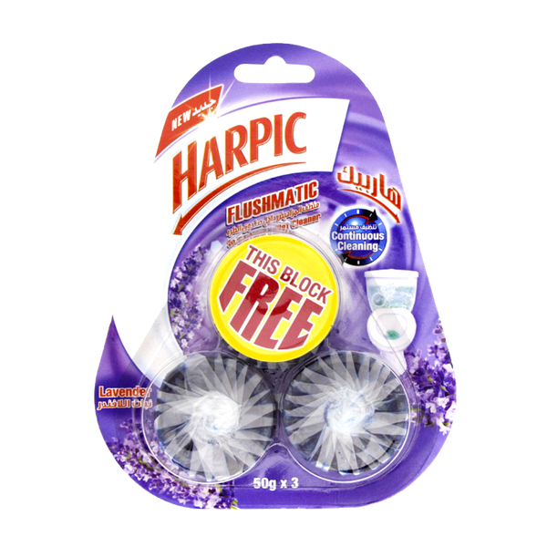 يساعدك منظف المراحيض هاربيك فلوشماتيك في منع تراكم البقع مما يمنحك مرحاضًا نظيفًا بشكل مستمر. كتلة واحدة تدوم لمدة تصل إلى شهر تقريبًا وتجعلك تستمتع برائحة اللافندر المنعشة مع كل تدفق - 3 × 50 جم