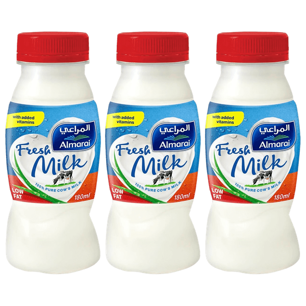 حليب قليل الدسم من المراعي غني بالفيتامينات والمعادن ومصدر جيد لفيتامين (د) والكالسيوم. خيار صحي للغاية للإستهلاك اليومي - 3 × 180 مل