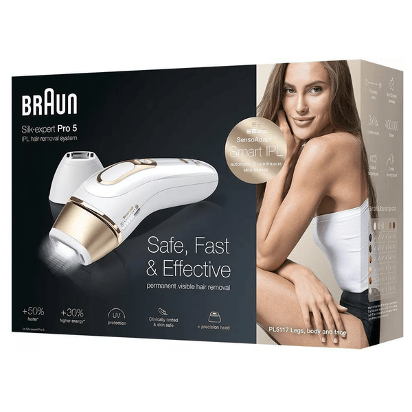 يتكيف IPL القوي مع لون بشرتك، آمن للاستخدام على درجات لون البشرة الفاتحة إلى المتوسطة الداكنة، مدمج وخفيف الوزن، مرشحات للأشعة فوق البنفسجية ومستشعرات ملامسة الجلد لسلامة العين، 10 مستويات كثافة لتتناسب مع لون بشرتك - رقم الموديل. PL 5117