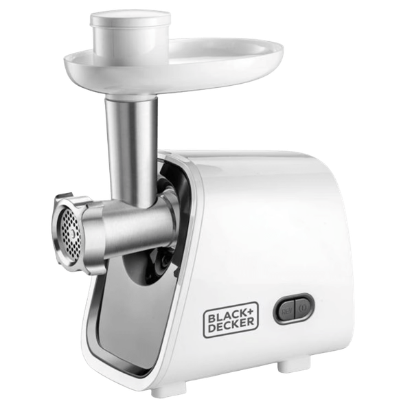شفرة عرضية، صينية بلاستيكية، صانع سجق، صانع كباب ودافع، 2 أقراص تقطيع و 5 رؤوس طحن - القوة: 1500 واط - اللون: ابيض - الوقت: 15 دقيقة - رقم الموديل. FM1500-B5