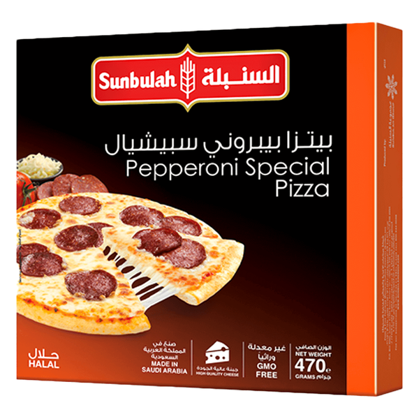 انغمس في البيتزا ببروني اللذيذة عند تحضيرها مع بيتزا السنبلة. مصنوعة من الدقيق الفاخر وأفضل المكونات، تقدم لك السنبلة بيتزا طرية ولذيذة مع القرمشة الصحيحة - 470 جم