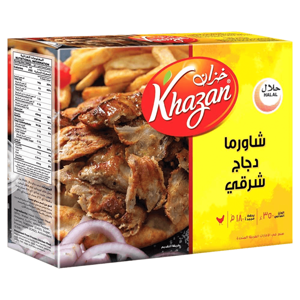 لحم دجاج حلال، ماء، بصل، ملح، اوريجانو، ثوم، فلفل أبيض، ليمون، مثبت، مادة حافظة للسكر ومضادات الأكسدة - 350 جم