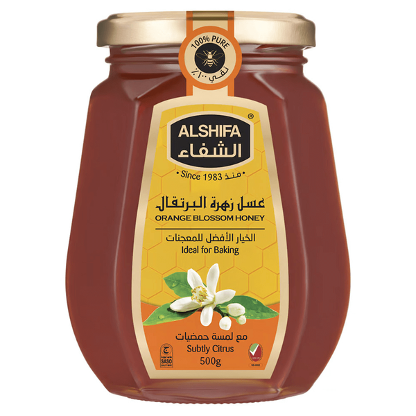 عسل البرتقال الطبيعي من الشفاء هو عسل طبيعي نقي 100٪، ذهبي نقي مع نكهة غنية - 500 جم