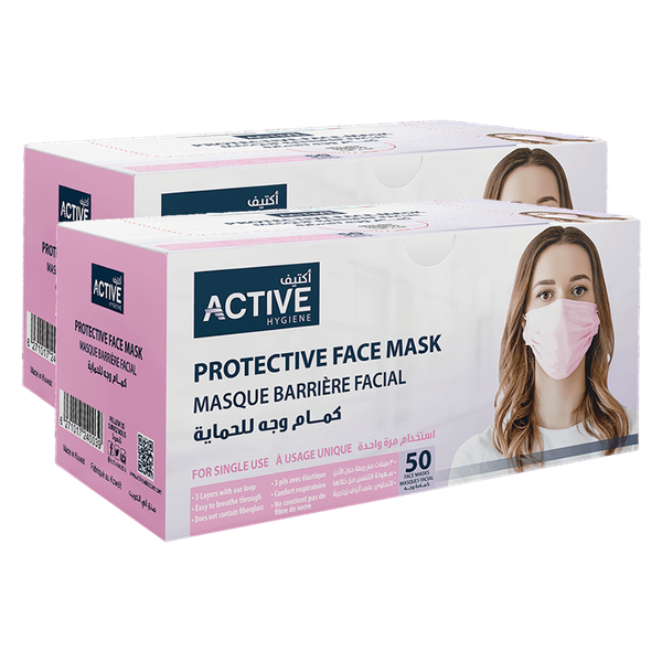 تم تصميم هذه الأقنعة ليتم ارتداؤها من قبل المتخصصين الصحيين أثناء الجراحة والتمريض لحماية فم وأنف مرتديها من أي بكتيريا، يسهل التنفس من خلالها، 3 طبقات مع حلقة الأذن - 2 × 50 كمامة وردية