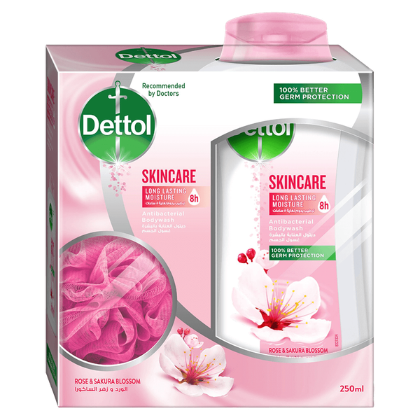 يمنح جل الاستحمام وغسول الجسم ديتول للعناية بالبشرة حماية أفضل بنسبة 100% من الجراثيم مقارنةً بالمنتجات غير المضادة للبكتيريا، كما تم اختباره ضد البكتيريا. فهو يجمع بين حماية ديتول الموثوقة من الجراثيم وعطر الورد وزهر الساكورا لحماية بشرتك ومساعدتك على الاسترخاء - 250 مل