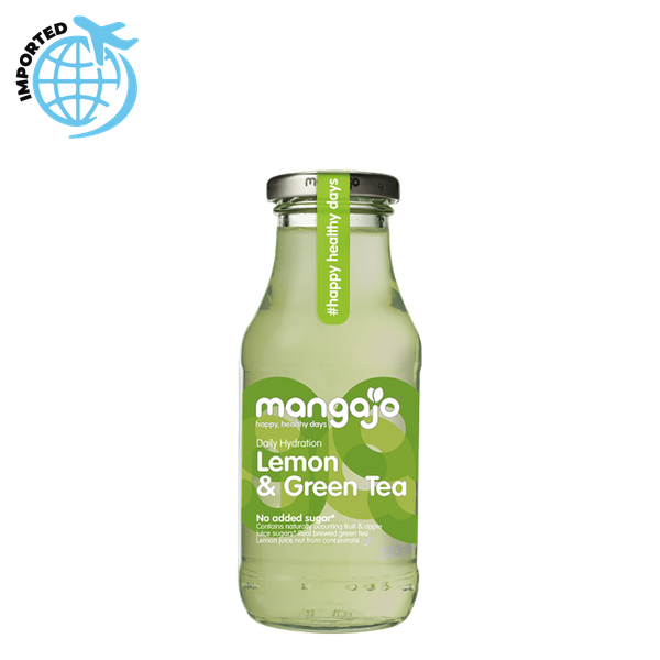 شاي أخضر بالليمون من مانجاجو مشروب بطبيعته مزيل للسموم، لذيذ وصحي. مشروب منعش بنكهة الليمون غني بمضادات الأكسدة بدون سكر مضاف، ألوان، مواد حافظة أو محلّيات - عبوة زجاجية 1 × 250 مل