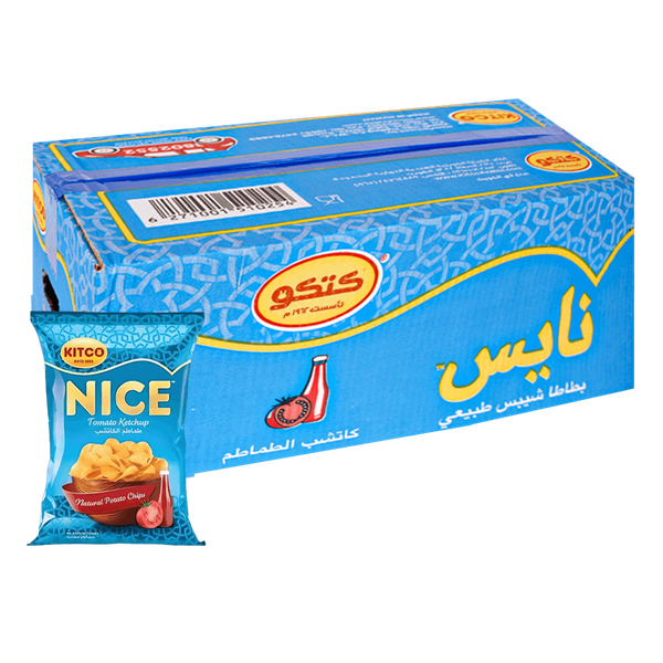 شيبس بطاطس نايس بنكهة الكاتشب من كتكو، رقائق بطاطس طبيعية، مقرمشة ولذيذة، محضرة بعناية ومتبلة بنكهة الكاتشب الفريدة، مناسبة لجميع أفراد العائلة - 20 × 22 جم