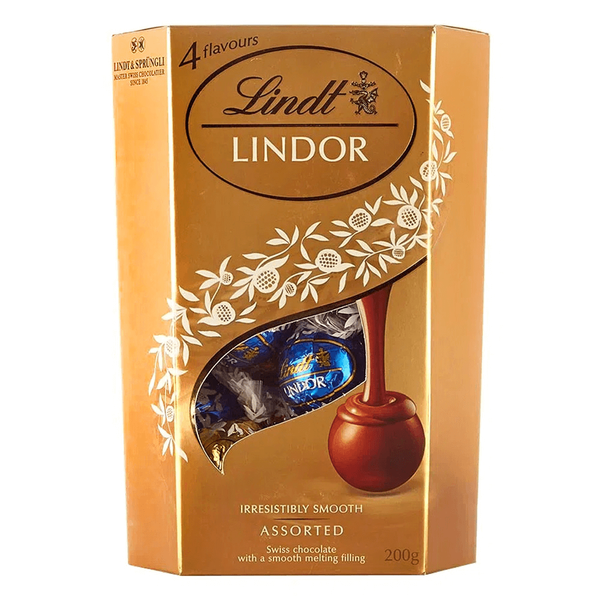 إختبر السعادة مع هذه المجموعة المتنوعة من حليب ليندت لندور الناعم الذائب، شوكولاتة مغلفة بيضاء، غامقة وبالبندق - 200 جم