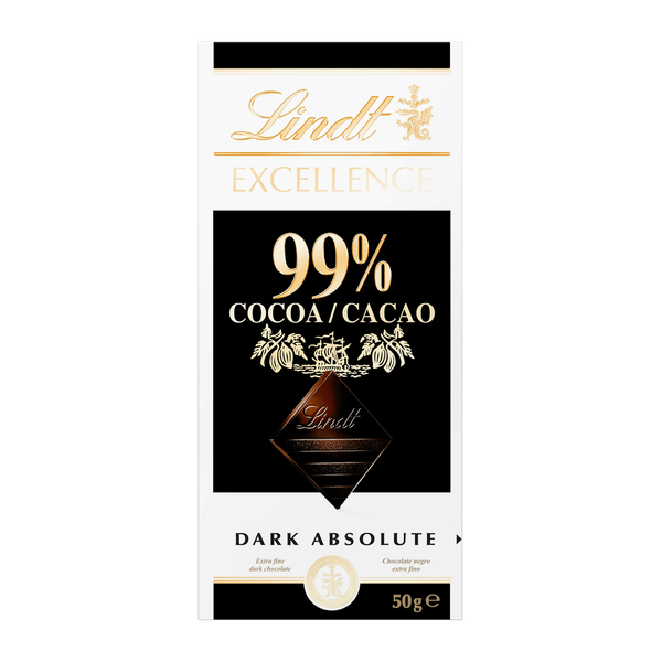 لوح شوكولاتة الإمتياز الغامقة 99% كاكاو من ليندت، تاج الشوكولاتة الداكنة، له نكهة قوية، طعم كاكاو كامل القوام ورائحة قوية - رزمة 1 × 50 جم