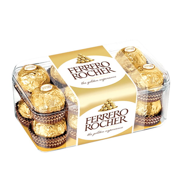حبة بندق كاملة محاطة بطبقات لذيذة من الويفر المقرمش وحشوة مخملية من شوكولاتة الحليب الناعمة وقطع البندق المفرومة - 2 × 16 قطعة