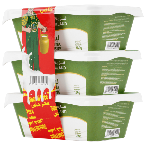 لبنة من فارملاند مصنوعة من الحليب الطازج 100٪. غنية بالكالسيوم وصحية لجميع المناسبات. مثالية لساندويش صحي - 3 × 180 جم