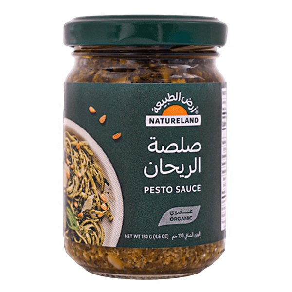 لا تحتوي صلصة الريحان العضوية في أرض الطبيعة على مواد حافظة أو نكهات صناعية أو ألوان. ما لا يقل عن 95٪ إلى 100٪ من المكونات طبيعية تمامًا في جميع مراحل الإنتاج - 130 جم