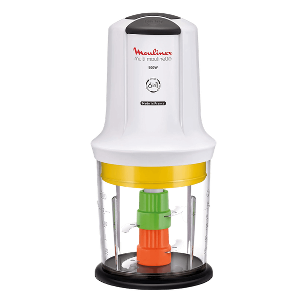 2 شفرة حادة للأعشاب، البصل واللحوم، وكذلك 2 نصل مسنن لحبوب القهوة والبهارات والثلج المجروش. 6 في 1: قطع صغير، خلط، تقطيع، طحن، سحق - القوة: 500 وات - اللون: ابيض - نوع المعدن: البلاستيك - رقم الموديل. At7231