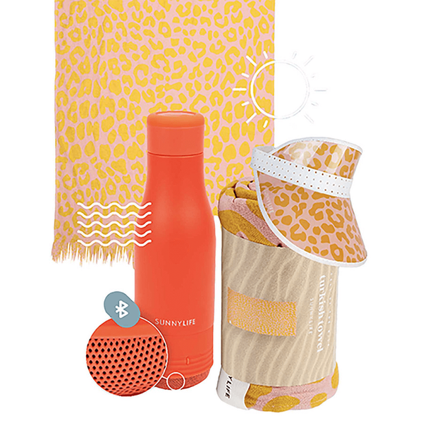 تتضمن المجموعة: عبوة للمياه مع مكبر للصوت باللون البرتقالي قبعة ريترو فيستر بطراز نداء البرية منشفة تركية بطراز نداء البرية