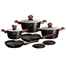 مجموعة أواني طهي صديق للبيئة وسهل التنظيف، مصنوع من الألمنيوم يشمل: قلاية - 20 × 4.2 سم قلاية عميقة - 24 × 6.8 سم قدر مع غطاء - 20 × 10 سم، 24 × 12 سم، 28 × 12.5 سم 2 حصير من الباكليت الأسود رقم الموديل GBH045-2