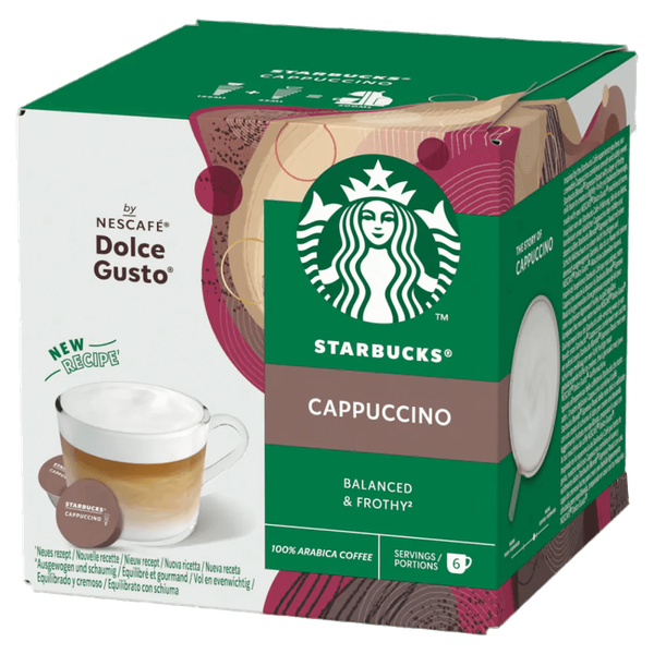 مستوحى من كابتشينو ستاربكس الذي تحبه، متوازن، ممتع ومألوف بشكل لذيذ. إنه نظام قهوة بجودة احترافية وسهل التحضير، يمكنك تحضيره في المنزل باستخدام ماكينة نسكافيه دولتشي غوستو - 12 كبسولة دولتشي غوستو