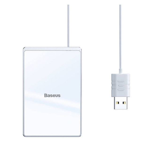 شاحن لاسلكي فائق النحافة مع كابل USB بطول 1 متر من بيسوس - فضي و أبيض