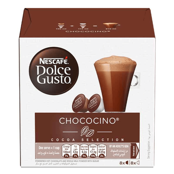 اكتشف النسكافيه اللذيذ دولتشي غوستو شوكوسينو. هذه ليست شوكولاتة ساخنة عادية، فهي ذات مذاق شوكولاتة مكثف مع روائح الفانيليا، ومكتملة برغوة الشوكولاتة الكثيفة اللذيذة - 16 كبسولة