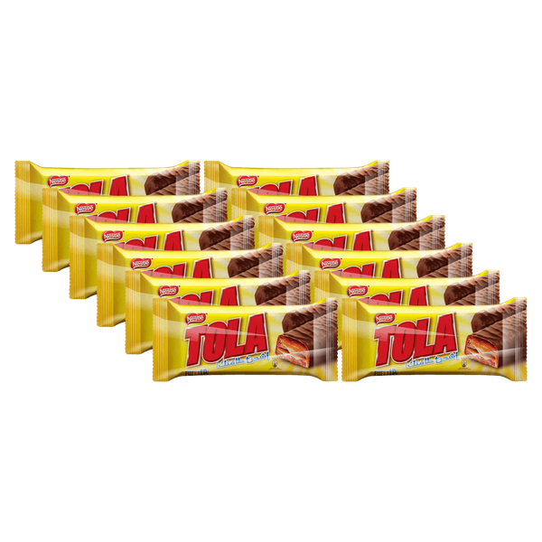 تجمع تولا بين النكهات الرائعة لبسكويت الويفر المقرمش والكراميل الناعم والشوكولاتة الناعمة في قضمة واحدة. تتكون ألواح الشوكولاتة من مواد لذيذة ومقرمشة وكريمية معاً لإرضاء جميع الأذواق - 12 × 31 جم