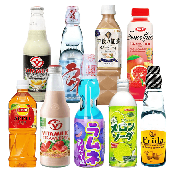 تتضمن المجموعة: حليب الصويا فيتاميلك بالفراولة، متعدد الحبوب والموز شراب فرولا بالمانجا والليتشي والكمثرى شراب هاتا كوسين بالتفاح والفراولة والتوت الأزرق شاي ليبتون مثلج بالتفاح شراب سنجاريا بالشمام شراب توموماسو بالبطيخ شاي حليب كيرين جوجو نو كوتسا