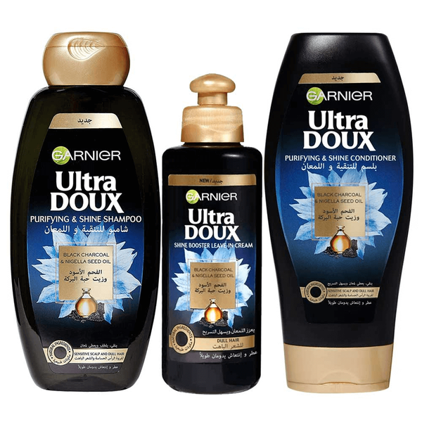شامبو وبلسم وكريم الشعر ألترا دوكس بالفحم من غارنييه - Drops