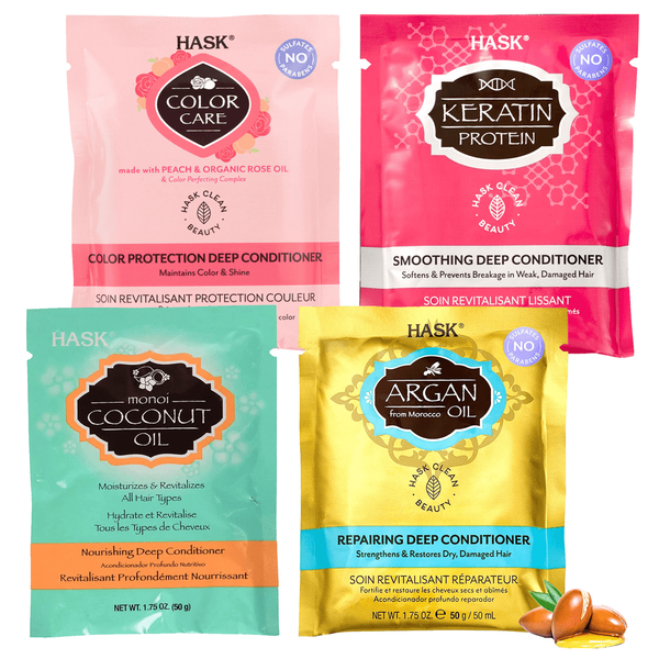 تتضمن المجموعة: بلسم العناية بالشعر المصبوغ - 50 مل بلسم تنعيم الشعر بالكيراتين - 50 مل بلسم تغذية الشعر بجوز الهند - 50 مل بلسم إصلاح الشعر بزيت الأرغان - 50 مل