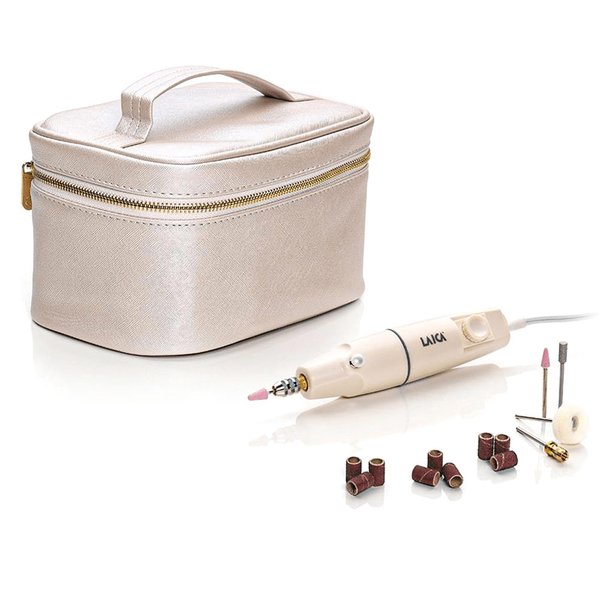 يحتوي على: حجر تشكيل الأظافر بحجم كبير، حجر تشكيل الأظافر بحجم صغير، حامل أسطواني، ملحق لقفل الأطراف، أسطوانة تنعيم، حجر تنعيم الأظافر