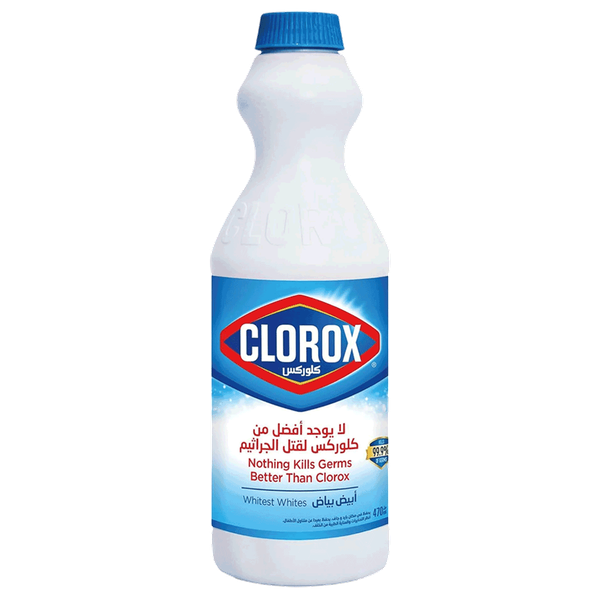 يزيل مبيض كلوركس السائل البقع وينظف ويطهر بينما يقضي على 99.9٪ من الفيروسات والبكتيريا المنزلية التي تكون دائماً شائعة - 470 مل
