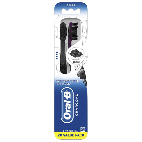 فرشاة أسنان ذات شعيرات مبللة بالفحم النشط. يقال أن الفحم يساعد في إزالة البقع السطحية وتحسين صحة الفم بشكل عام - 2 فرشاة أسنان