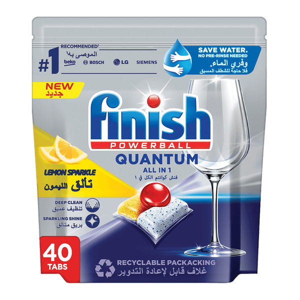 يحتوي مسحوق تنظيف غسالة الأطباق فينيش على عملية نقع مسبقة تعمل على امتصاص حتى البقع الثقيلة بحيث يمكن غسلها بسهولة. يعطي تنظيفًا عميقًا ويزيل الأطعمة القاسية مثل القهوة والبقع المحترقة والشحوم دون ترك أي بقايا خلفه - 40 كبسولة