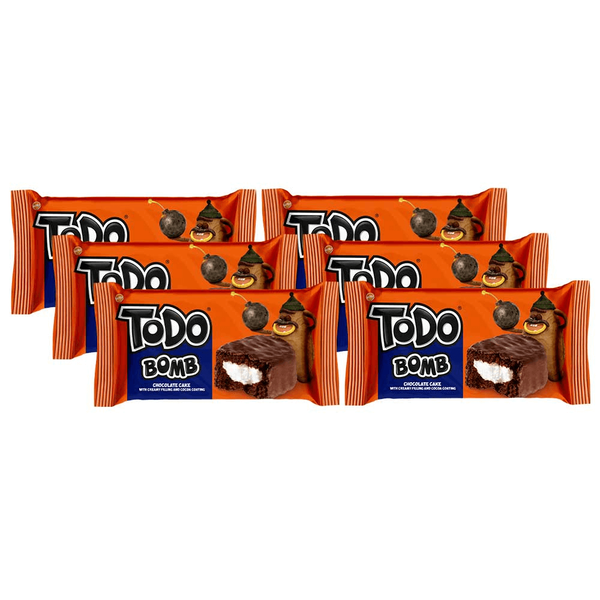 تودو بومب تجمع بين الشوكولاتة الغنية والكريمة مع قوام يشبه الزبدة، وهي واحدة من أشهر الوجبات الخفيفة في مصر، وبالتالي معشوقة لنكهتها اللذيذة وقوامها المتميز - 6 × 50 جم