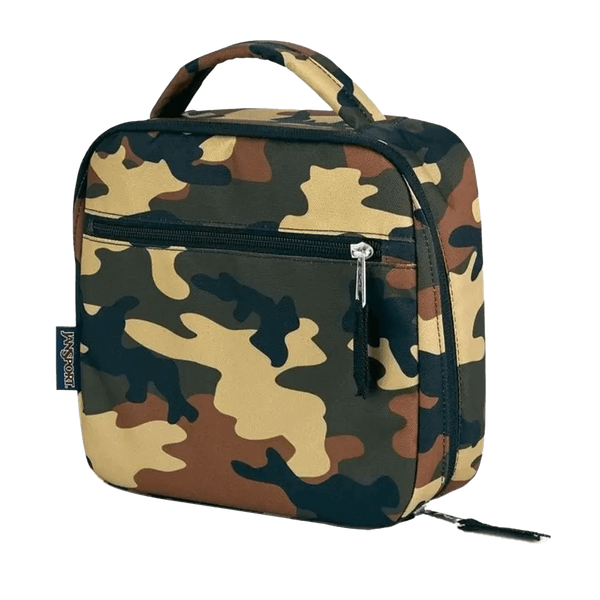 حقيبة غداء متينة وواسعة مصممة للحفاظ على أن يكون طعامك طازج ومنظم، مع قسم رئيسي كبير وجيب خارجي بسحاب لتخزين إضافي - كاموفلاج