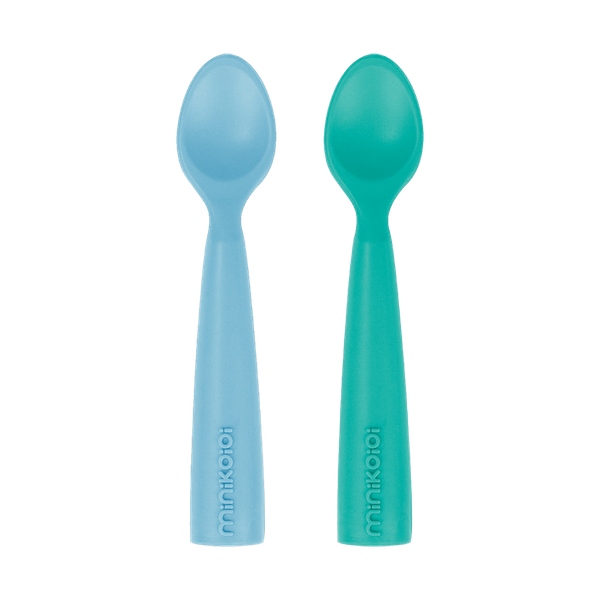 ملاعق سيليكون باللون الأزرق والأخضر من ميني كوي - (6 أشهر وما فوق)