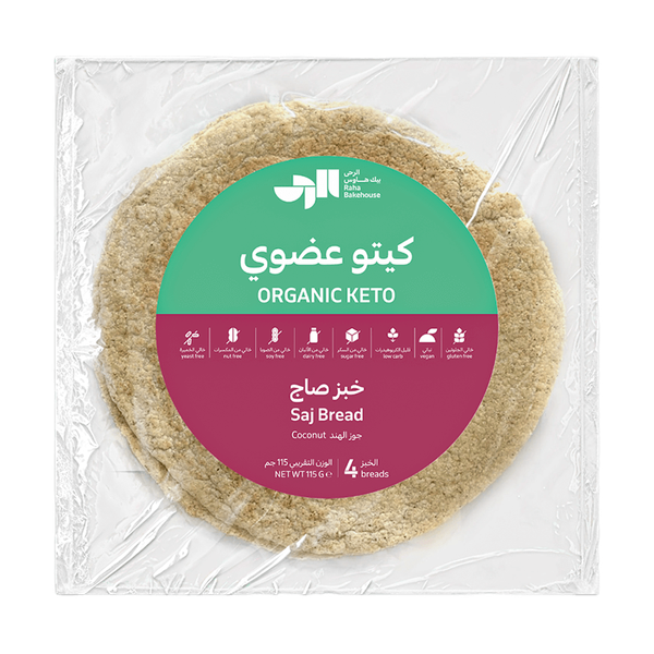 الخبز خالي تماماً من الخميرة وخالي من الصويا وخالي من منتجات الألبان وخالي من السكر. إنه منخفض الكربوهيدرات ونباتي وخالي من الجلوتين - 115 جم