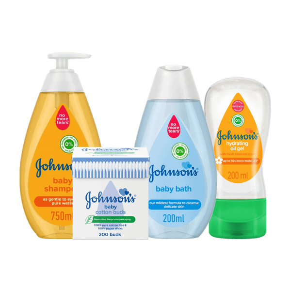 تتضمن المجموعة: شامبو للأطفال من جونسون (750 مل) - سائل إستحمام للأطفال من جونسون (200 مل) - أعواد القطن للأطفال من جونسون (200 قطعة) - جل الزيت المرطب برائحة الزهور المنعشة من جونسون (200 مل) - مجموعة من 4