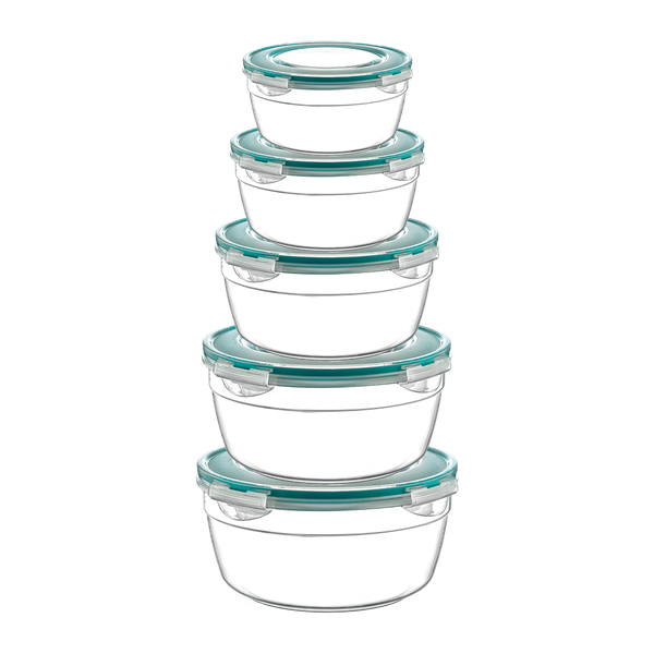 تتميز بنظام قفل محكم الغلق ومحكم ضد السوائل، مما يضمن أقصى قدر من النضارة والتخزين المريح. يرجى ملاحظة أنه لا ينبغي استخدام الغطاء في الميكروويف. هذه الحاويات خالية أيضًا من مادة BPA لمزيد من الأمان. تحتوي المجموعة على: 0.25 لتر (21 × 11 سم) + 0.5 لتر (21 × 11 سم) + 0.86 لتر (21 × 11 سم) + 1.5 لتر (21 × 11 سم) + 2.3 لتر (21 × 11 سم) - مجموعة من 5