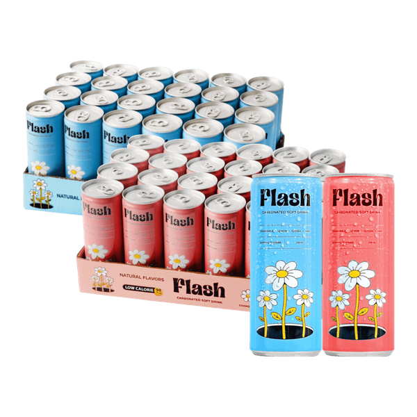 مشروبات غازية قليلة السعرات بنكهات طبيعية. الوردي: بابونج، ليمون، كرز، ونعناع. الأزرق: بابونج، ليمون، زنجبيل، ونعناع - ٤٢ × ٢٥٠ مل
