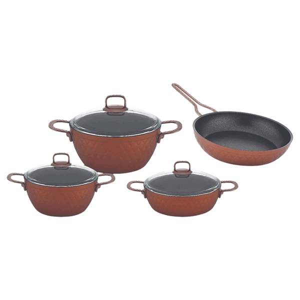 مجموعة أواني طهي جرانيت أنيقة توفر أداء غير لاصق وتنظيف سهل - وردي / 7 قطع