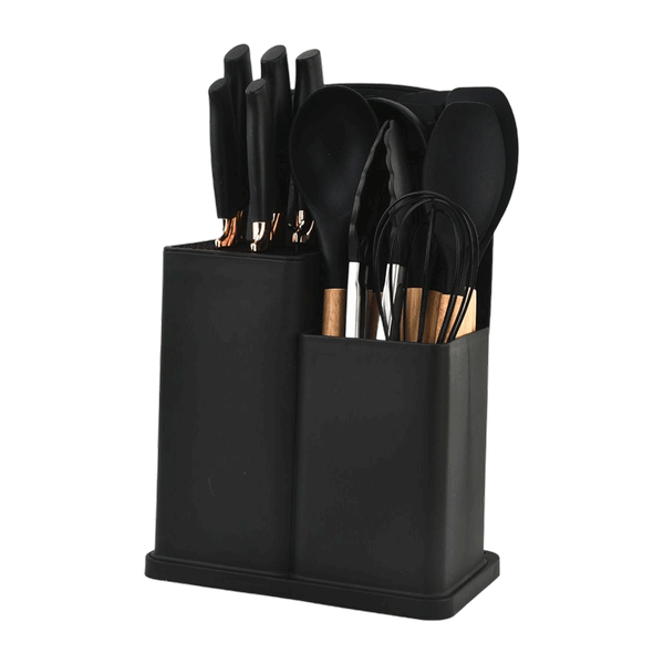 مجموعة أدوات مطبخ من السيليكون الأسود المقاوم للحرارة، مثالية للطهي الآمن والكفء - 19 قطعة