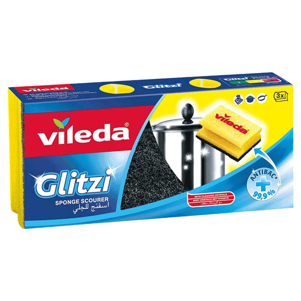 إسفنجة تنظيف Vileda Glitzi Crystal متينة وغير قابلة للخدش، مصممة للتعامل مع الفوضى والبقع الصعبة. سطحها الشفاف الخاص يضمن تنظيفًا فعالًا دون الإضرار بالأسطح الحساسة - 3 قطع