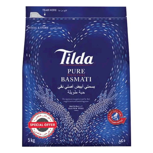 أرز بسمتي طويل الحبة عالي الجودة معروف بقوامه الرقيق ونكهته العطرية - 5 كجم