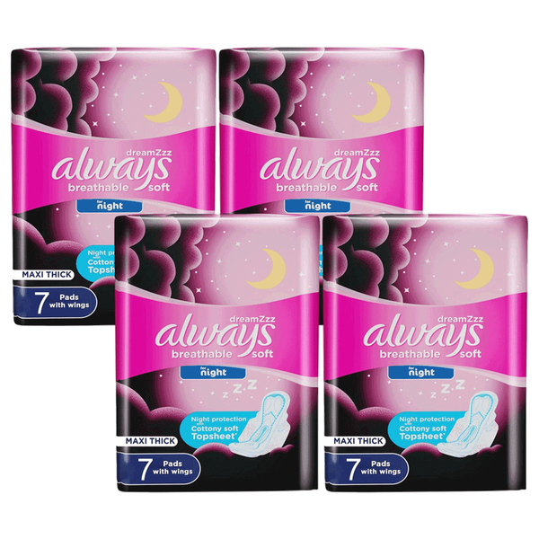 Night-time maxi pads with breathable layers for added comfort - 4 x 7 Pads