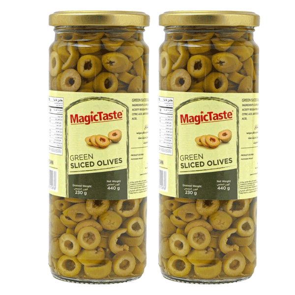زيتون أخضر مقطع عالي الجودة، يقدم طعمًا طازجًا ولاذعًا قليلاً لأطباق مختلفة - 2 × 440 جم