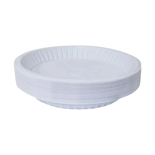 طبق بلاستيكي دائري صغير مثالي لتقديم الوجبات الخفيفة أو الحلويات أو الأطباق الجانبية بتصميم مدمج وأنيق لأي مناسبة - 50 قطعة
