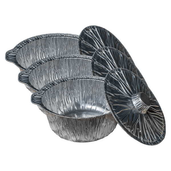 وعاء متوسط من ورق الألمنيوم بغطاء آمن مثالي لبقايا الطعام الجاهز أو تحضير الوجبات للحفاظ على الطعام دافئًا ومغلقًا جيدًا - 3 قطع
