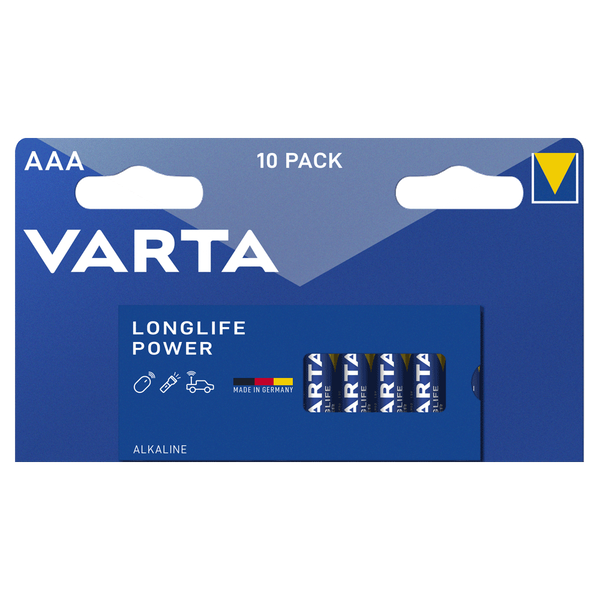 بطاريات فارتا لونغ لايف باور القلوية AA المغلفة بالبلاستيك، مثالية للتخزين والعرض في متاجر التجزئة، مع عبوة Vp10 - صُنعت في ألمانيا