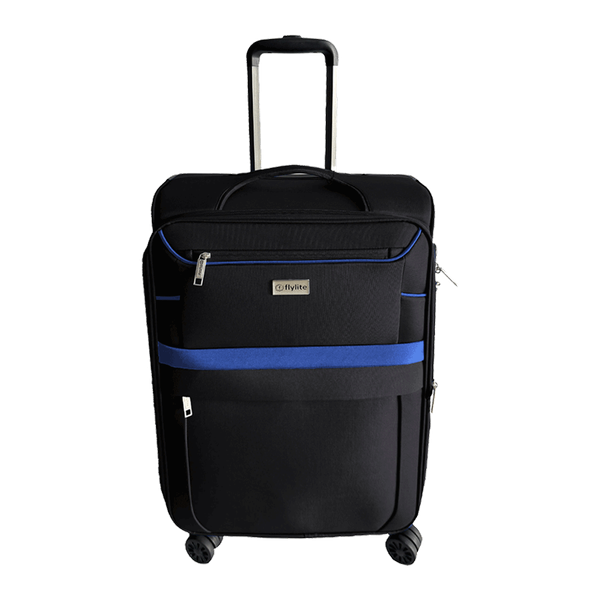 حقيبة سفر متوسطة الحجم ناعمة باللونين الأسود والأزرق للاستخدام اليومي - تسجيل الوصول - الأبعاد: ٦٧ × ٤٢ × ٢٦.٥ سم