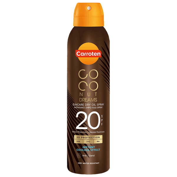 رذاذ زيت الدباغة مع عامل حماية من الشمس 20 ورائحة أحلام جوز الهند التي توفر الحماية من الترطيب وتجربة الدباغة الاستوائية - 150 مل