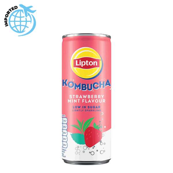 مشروب كومبوتشا منخفض السكر بنكهة الفراولة والنعناع يمزج بين طعم فاكهي منعش بروبيوتيك صديق للأمعاء مثالي لترطيب صحي - 250 مل