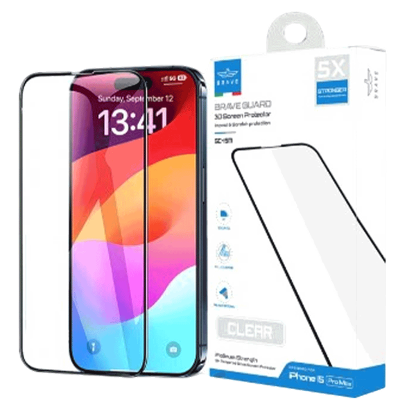 حامي شاشة Brave لهاتف iPhone 15 Pro Max شفاف يقدم حماية شفافة كاملة من الحافة للحافة مقاومة للخدش وبصمات الأصابع